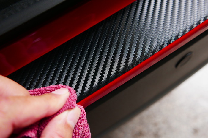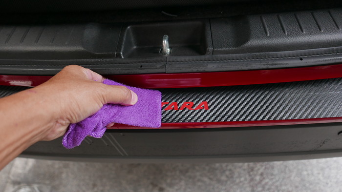 先清潔保桿表面後,再取酒精擦拭棉片加強清潔擦拭