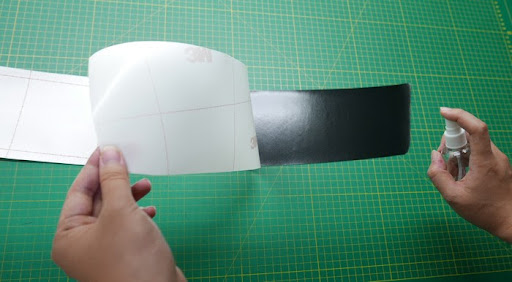 撕開底紙,朝背膠噴水