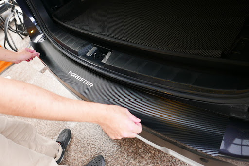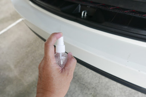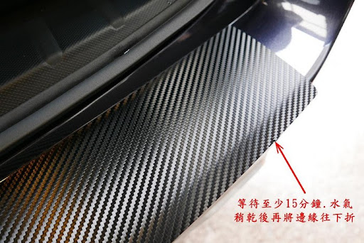 取噴霧罐裝滿清水,後保桿表面及貼膜背膠都用水噴濕,可重覆黏貼,調整至最適當位置,不怕貼壞